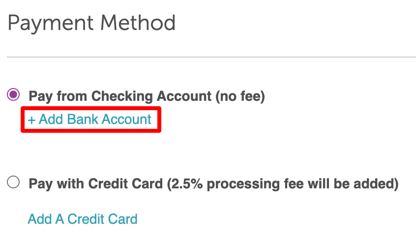 3. Under Payment Method, select the radio button for  Pay from Checking Account (no fee)