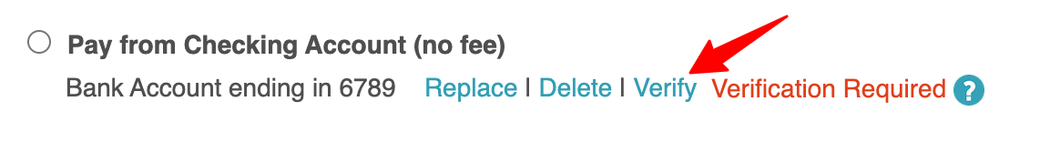 7. After receiving the deposits, return to the Payment Methods section and select Verify
