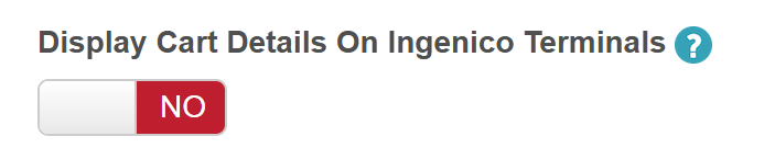 Display cart details on Ingenico Terminals ![]() | This setting is only available to merchants who have a Global Payments payment account. This setting dynamically updates and displays cart details on the Ingenico terminal screens. This will guarantee that each item's price, which the client must pay for, is clearly presented when the price is interpreted by the system. Learn more here |
