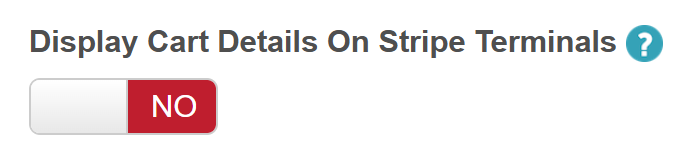 Display cart details on Stripe Terminals ![]() | This setting dynamically updates and displays cart details on the Stripe terminal screens. This will guarantee that each item's price, which the client must pay for, is clearly presented when the price is interpreted by the system. Learn more here |