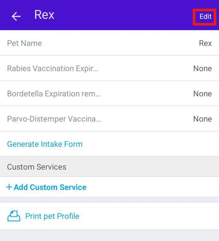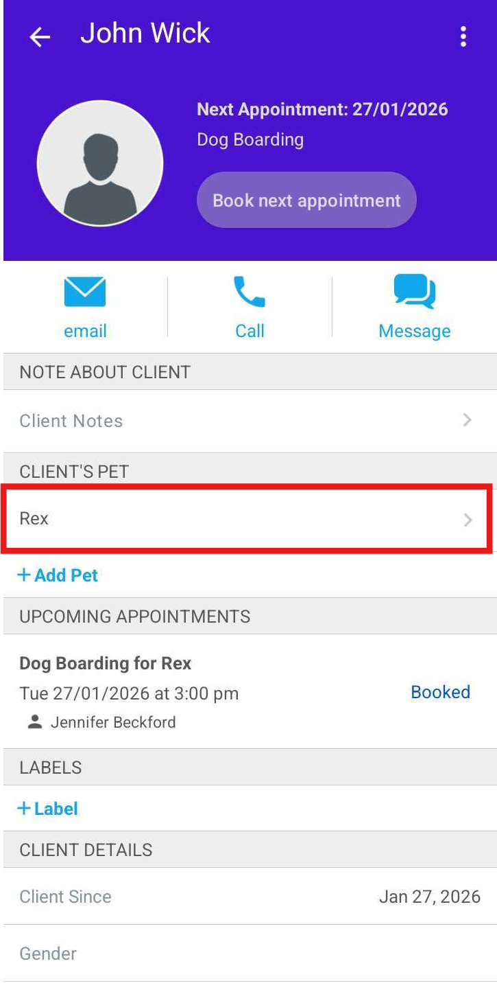 - In the Client’s Pet section, select the pet you want to update