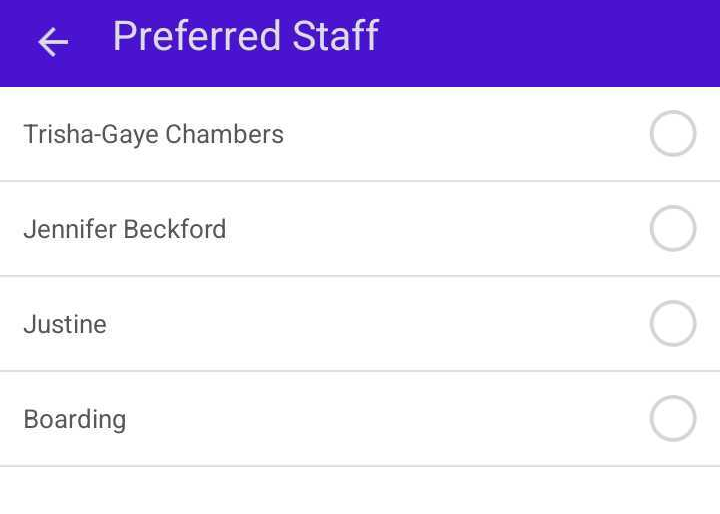 - Scroll to the Preferred Staff field and tap it