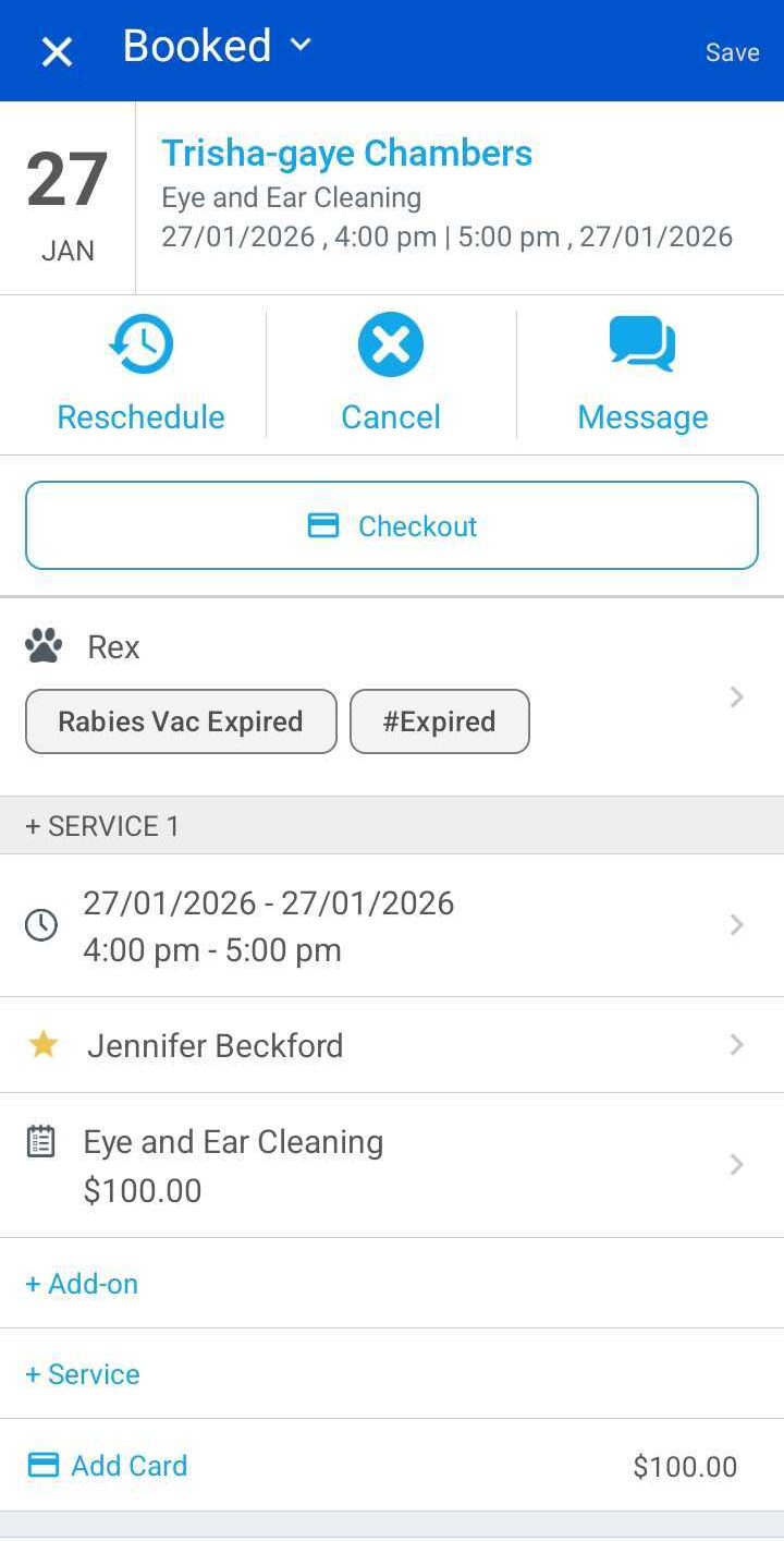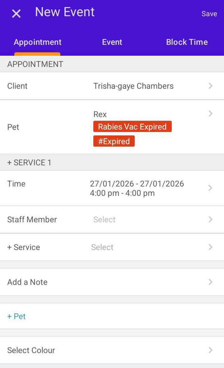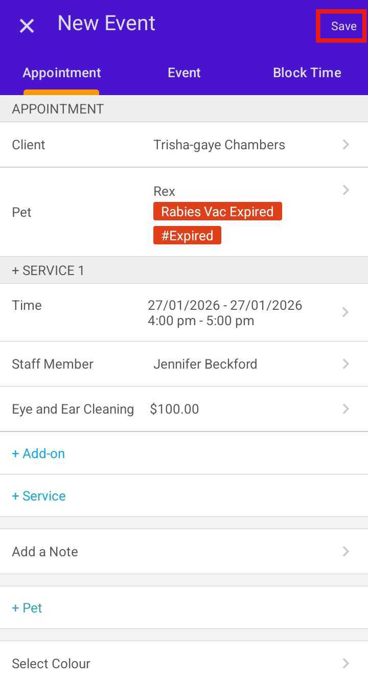 - Tap Save to create the appointment
