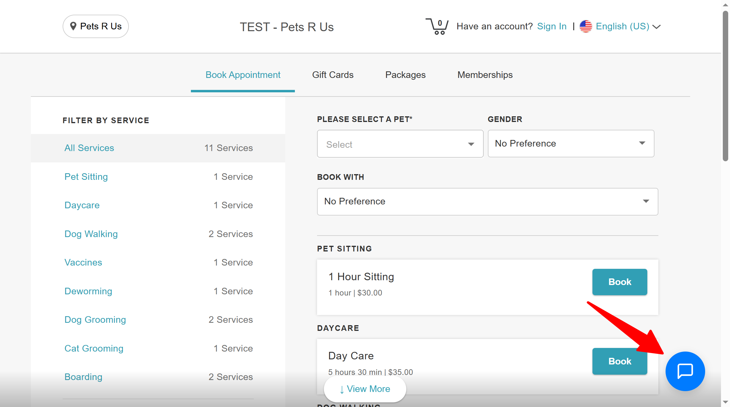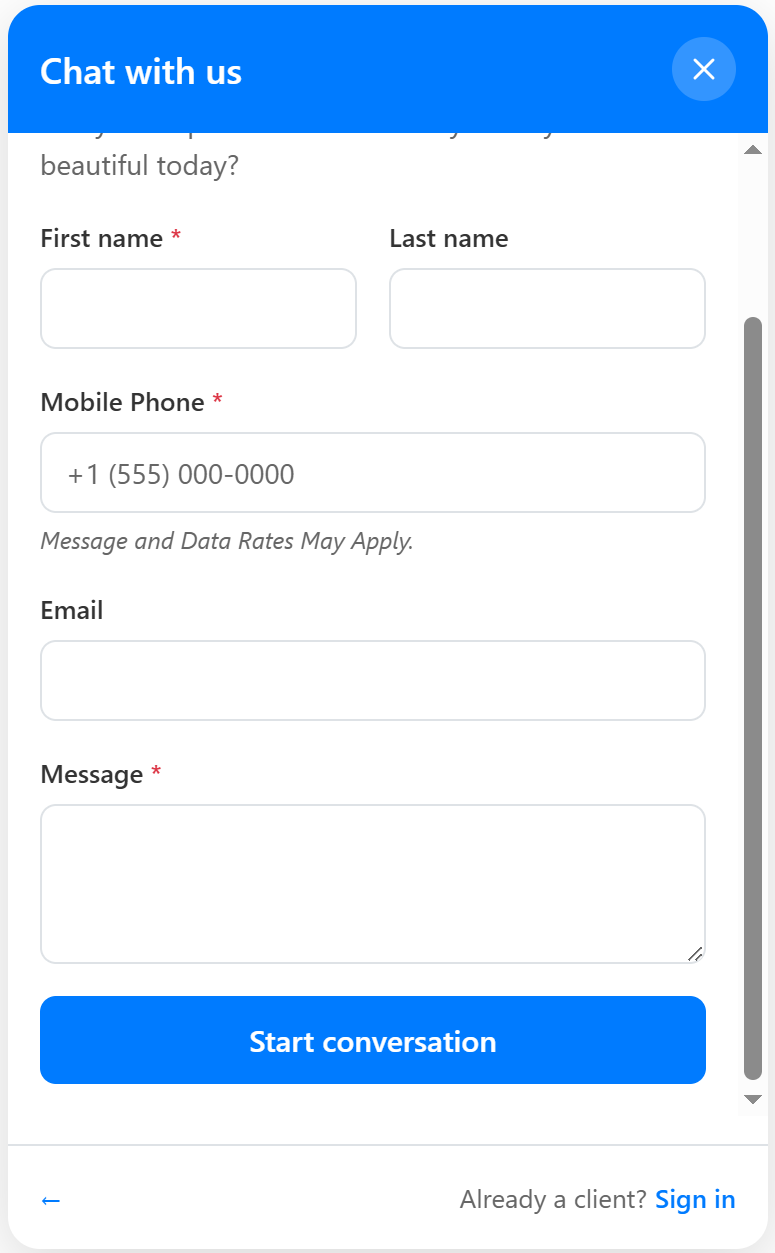 - Signing in through the chatbot does not sign the client into the booking widget