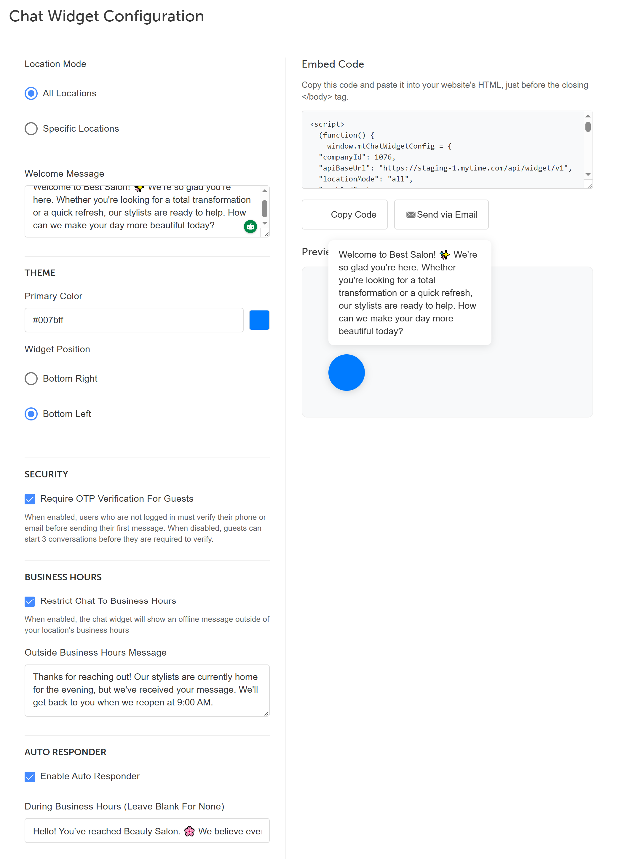 - Location Selection: Choose which locations will feature the chat widget.