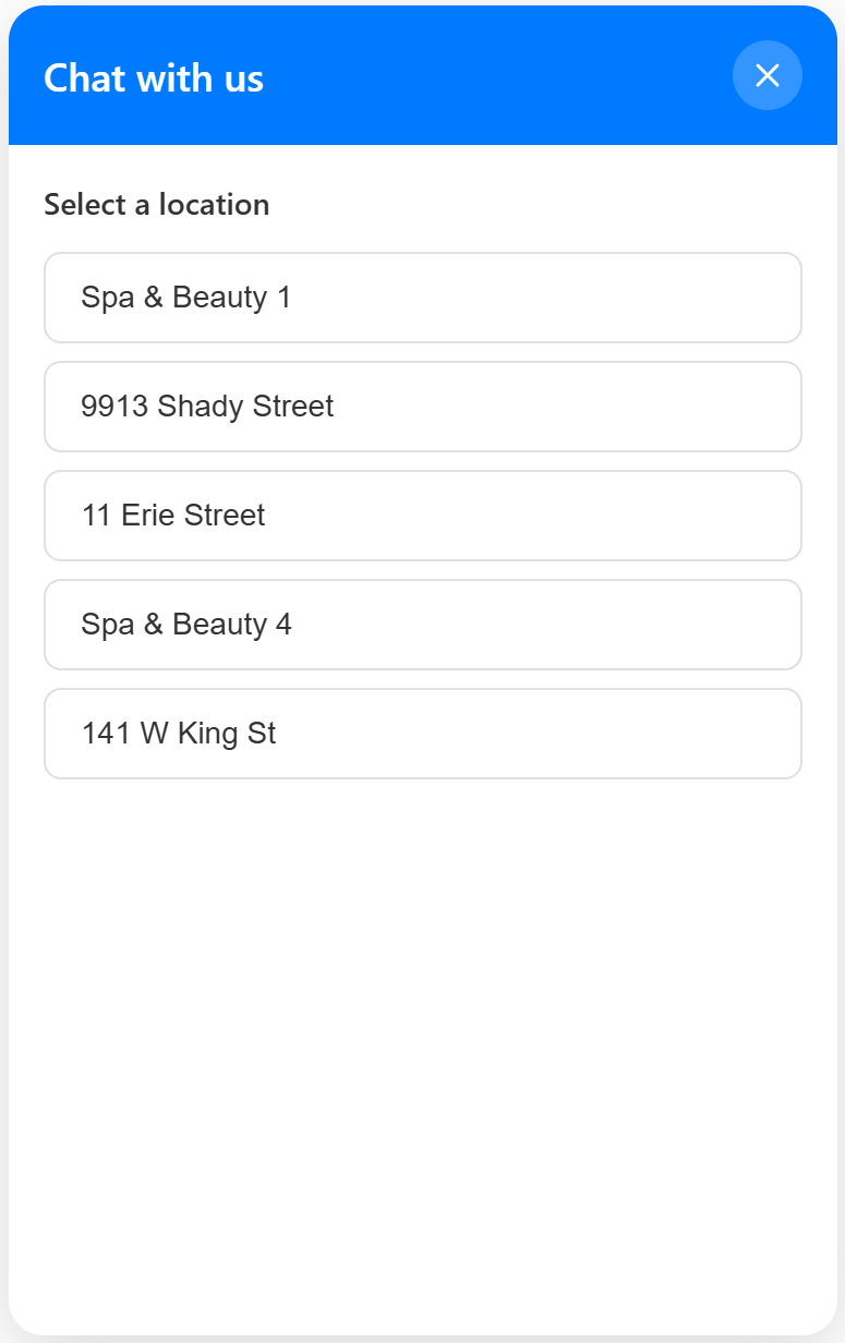 - If your business has multiple locations, the client will be prompted to select the specific site they are contacting
