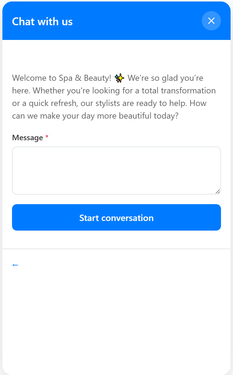 - Integrated Workflow: Incorporate the chat widget directly into your existing Booking or Express Checkout flows to assist clients during the scheduling process.