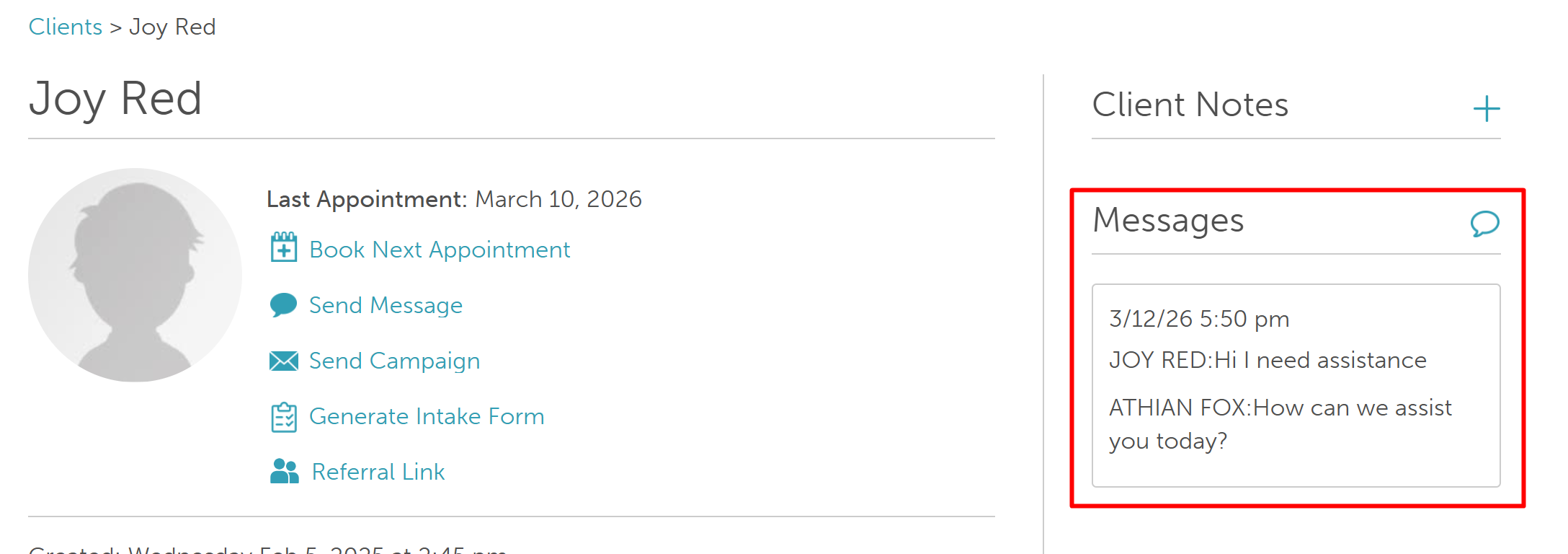 - Messages are stored in the Communicator and on the Client Profile.