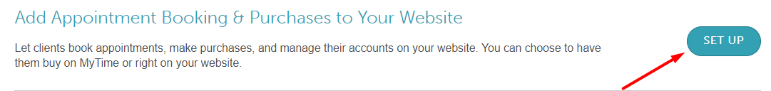 - Locate "Add Appointment Booking & Purchases to Your Website" and click the 'Set Up' button