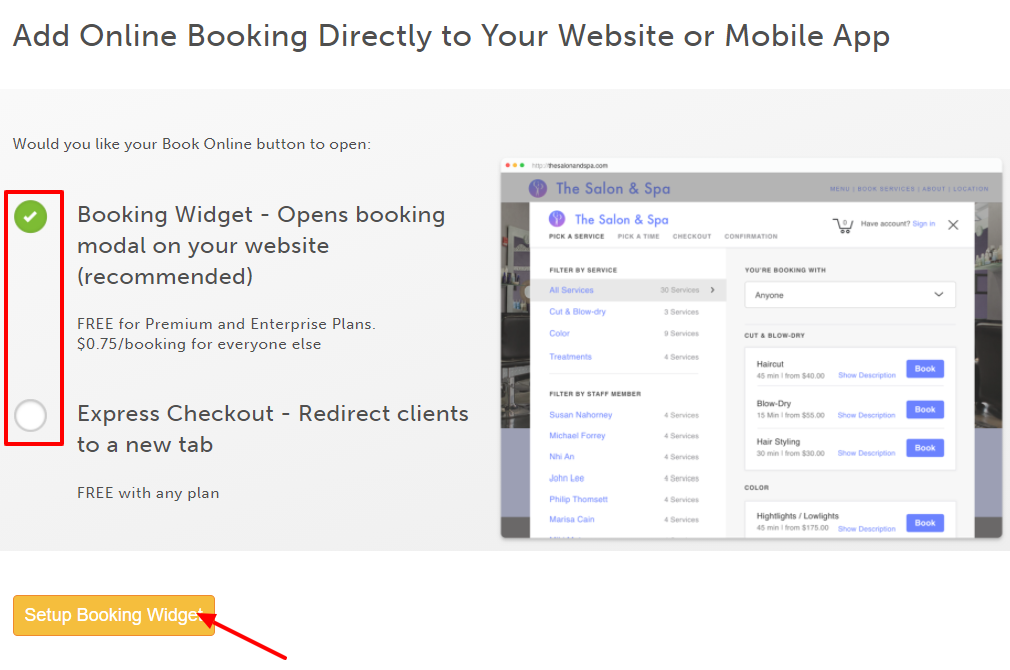- Click "Setup Booking Widget"