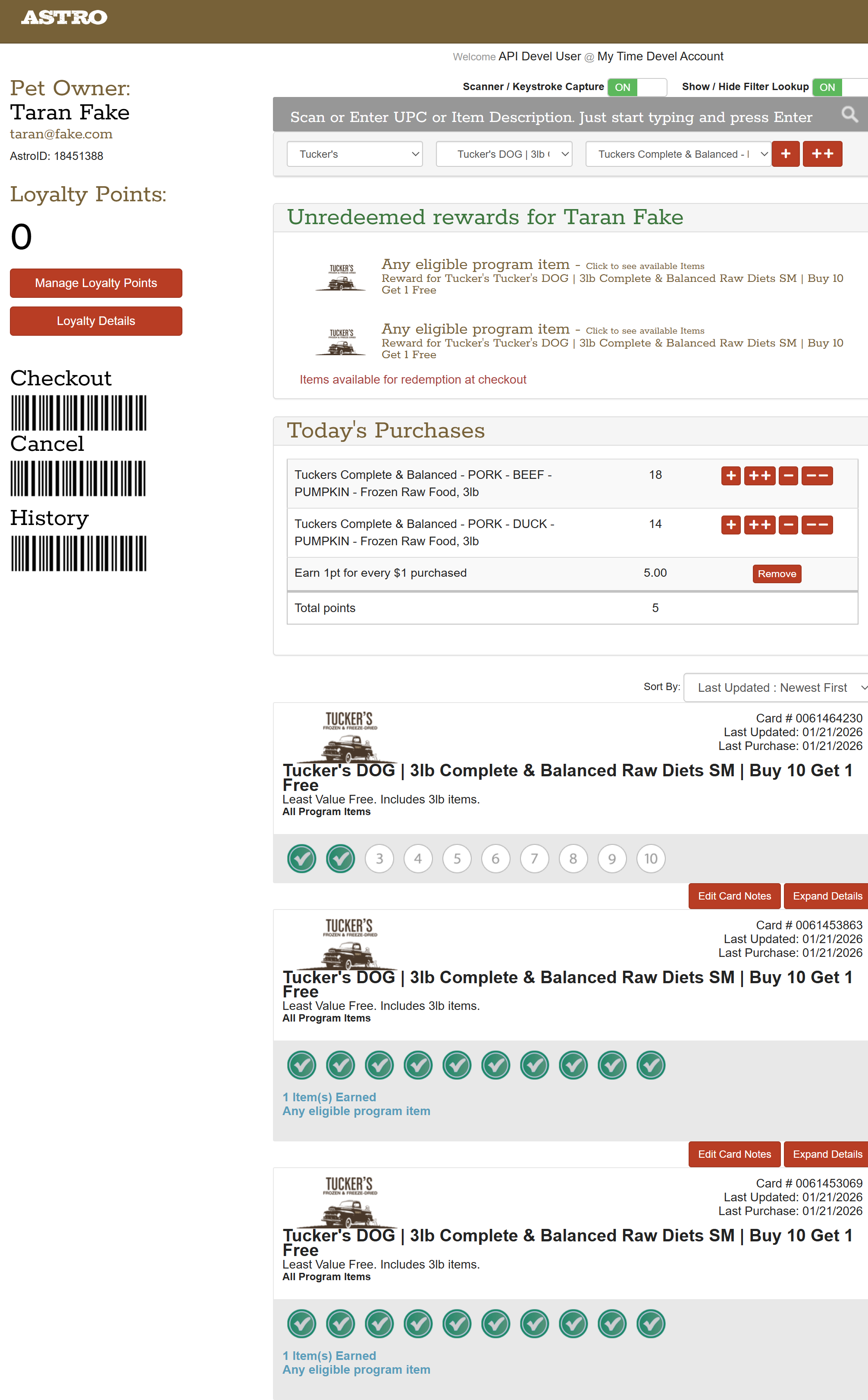 - View in Astro Loyalty: Opens the Astro site to view the client's detailed rewards history.