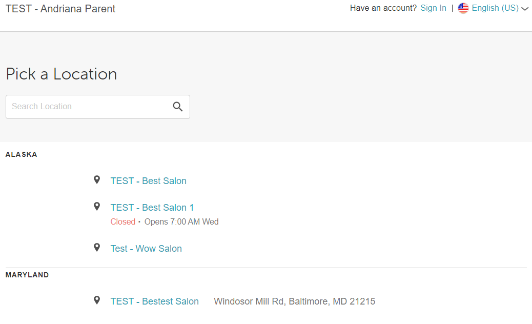 - Once a location is selected, they will be directed to the location-specific booking widget. Learn more here.