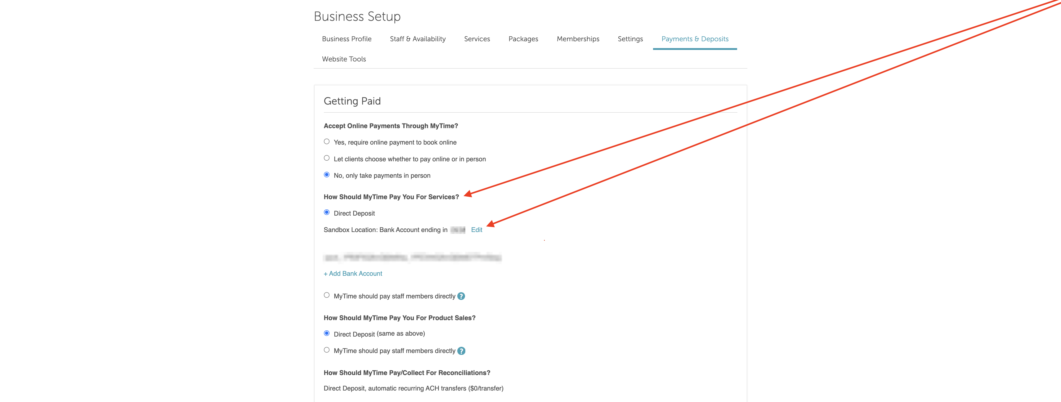 - Under the “How should MyTime pay you for services?” and “How should MyTime pay you for product sales?” settings, select “MyTime should pay staff members directly.”