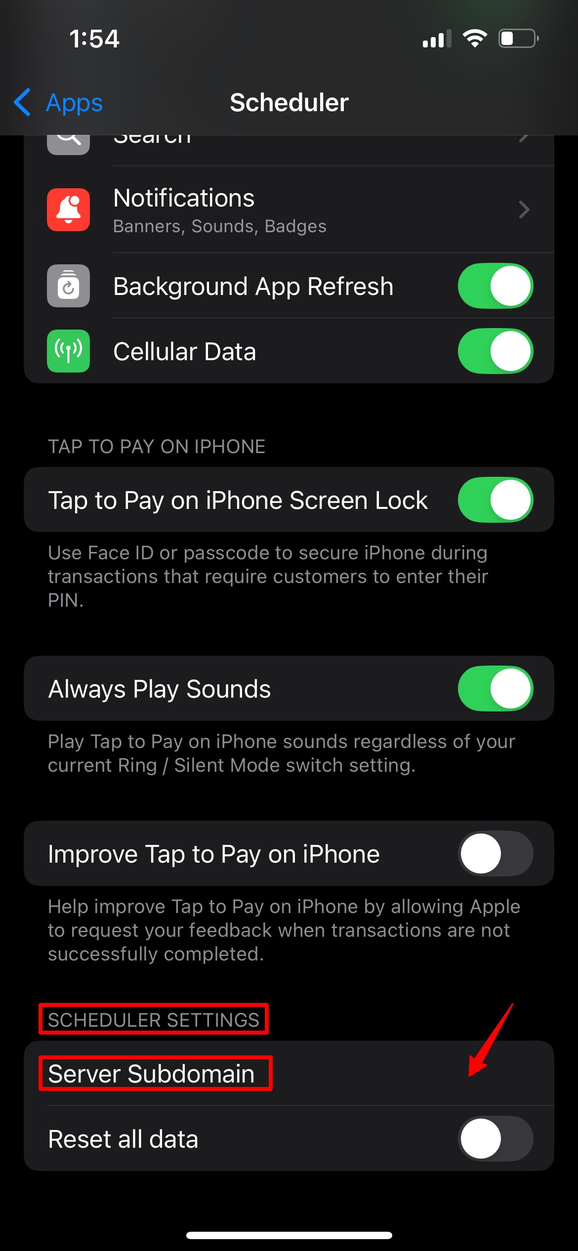 - Scroll down to the Scheduler Settings section and enter your server subdomain