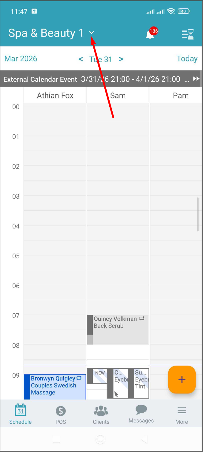 - Location Filter- If your account has multiple locations, you will be able to view and filter your schedule by location.