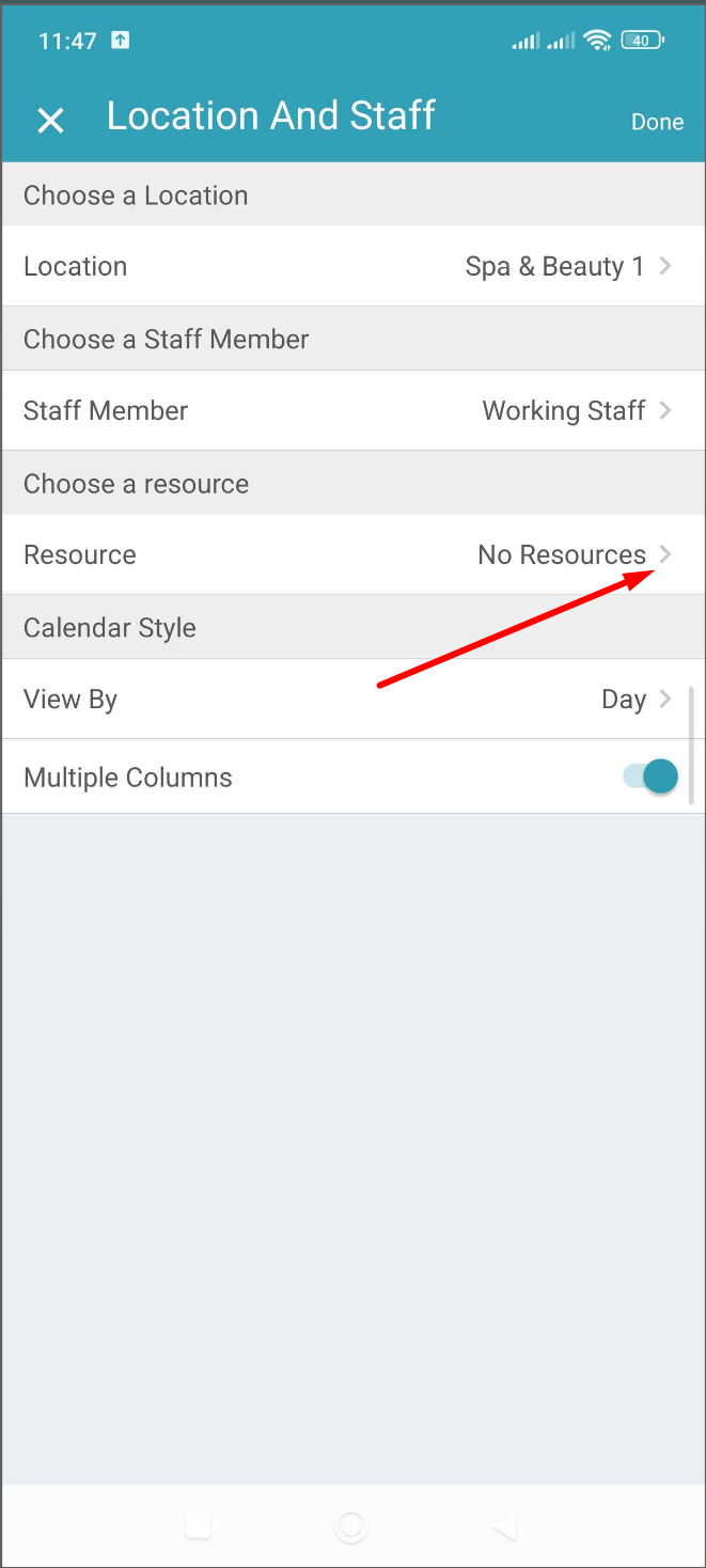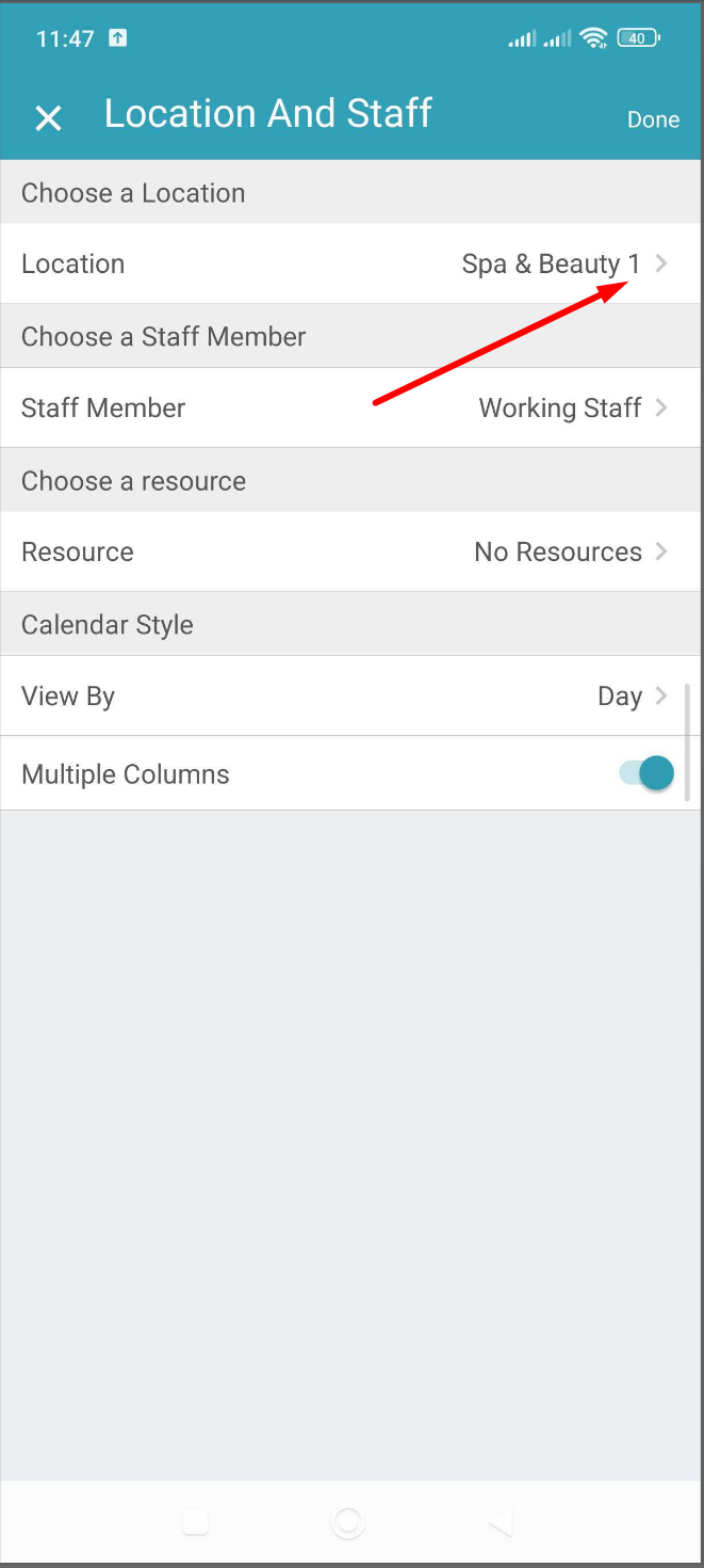 11. Once you have finished filtering the location and staff, click on "Done"