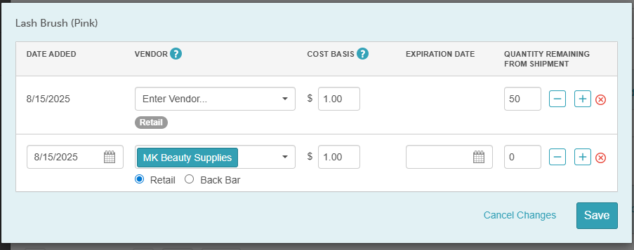 - Once a vendor is added, the vendor's name will automatically appear for future shipments of the same product.
