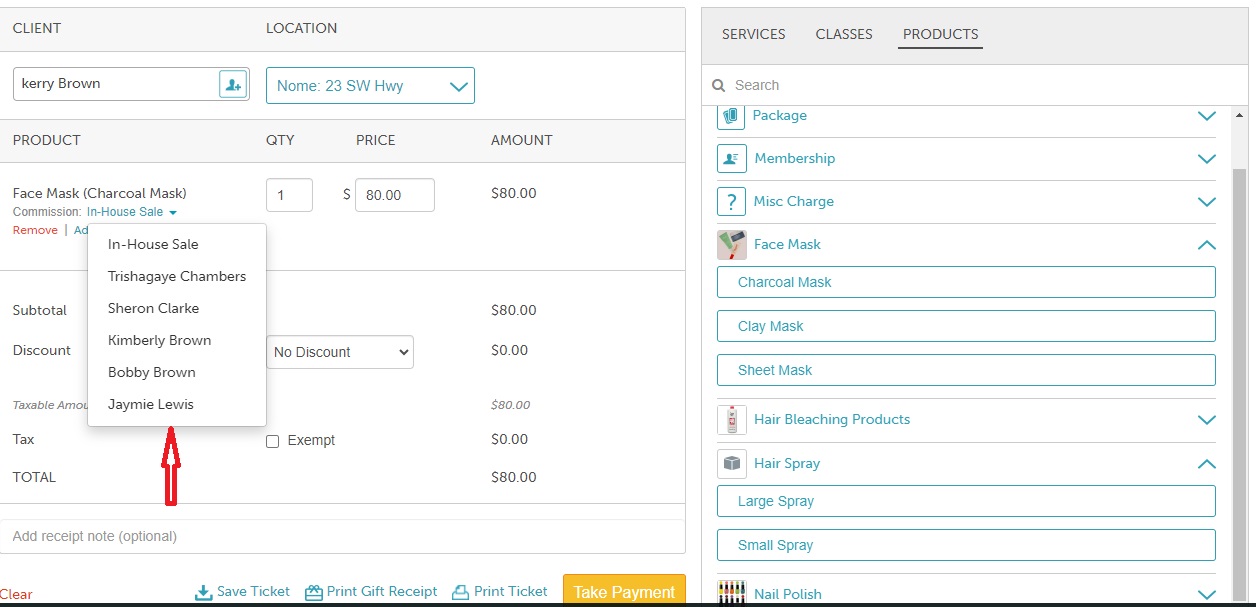 - A commission does not need to be configured on a staff member’s profile for them to appear in the commission dropdown on the POS ticket. Service providers, location managers, support staff, and any custom roles can be selected to receive commissions for product, membership, package, or gift card sales in the POS. However: