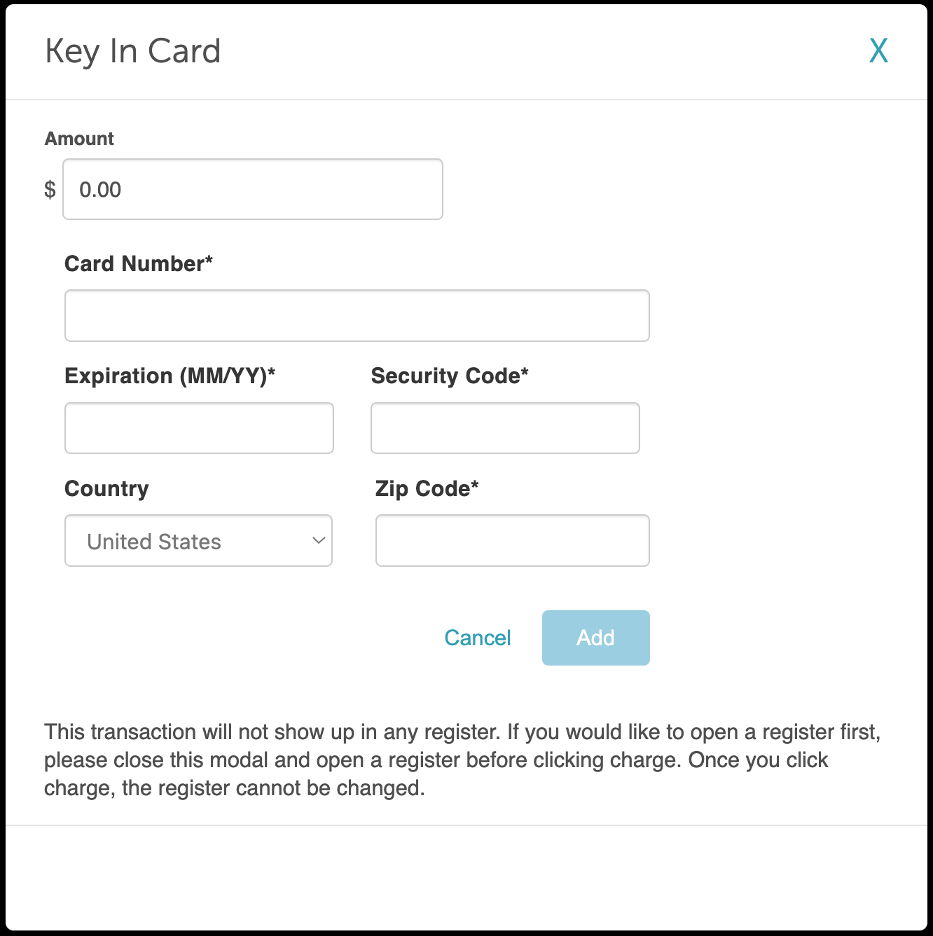 - You can select the card on file, key-in card, or swipe card button. A request will be sent to the card terminal while in POS: