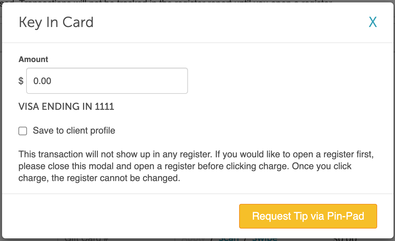 - A second pop-up will appear prompting you to click Request Tip via Pin-Pad.