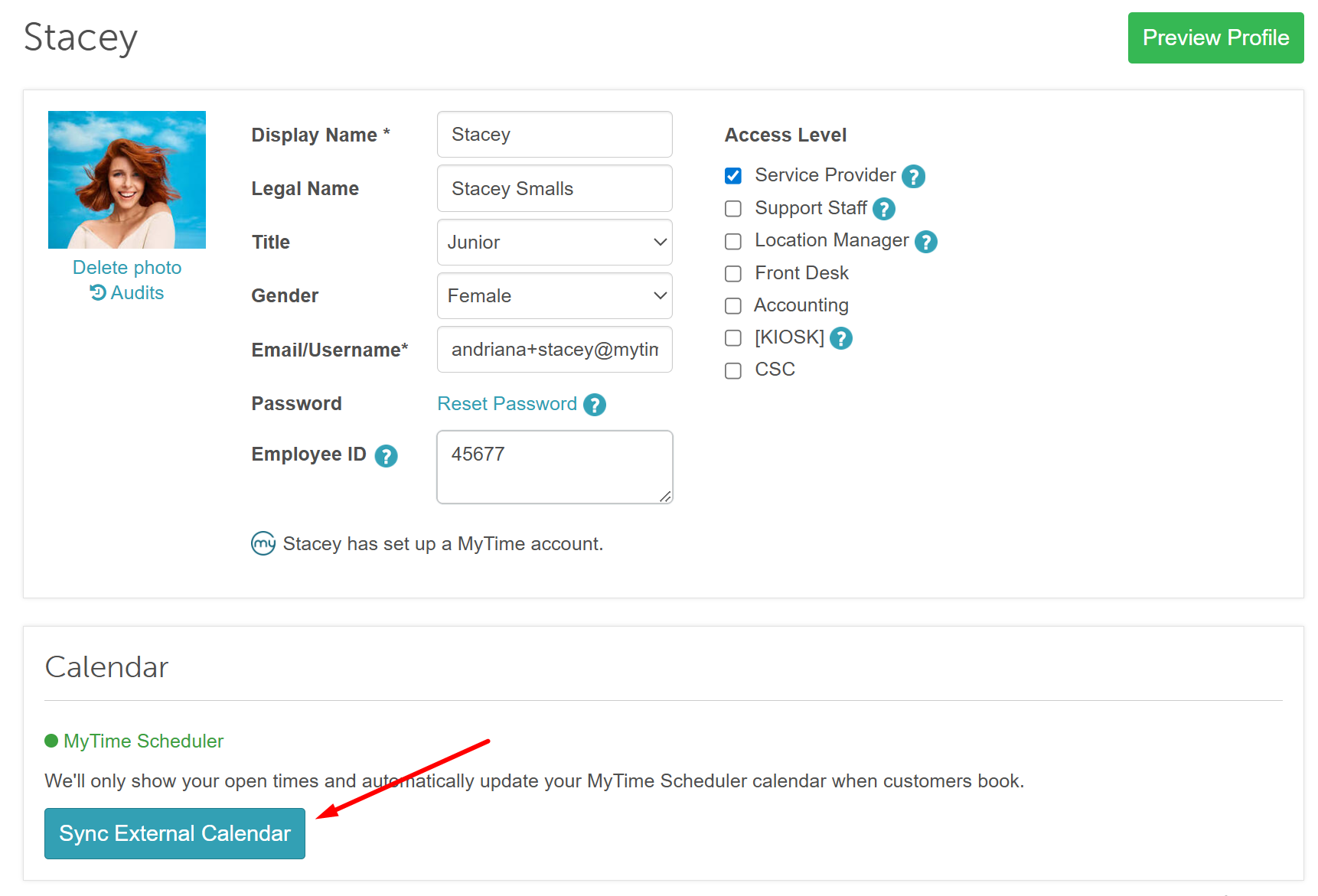 - In the staff profile, click Sync External Calendar