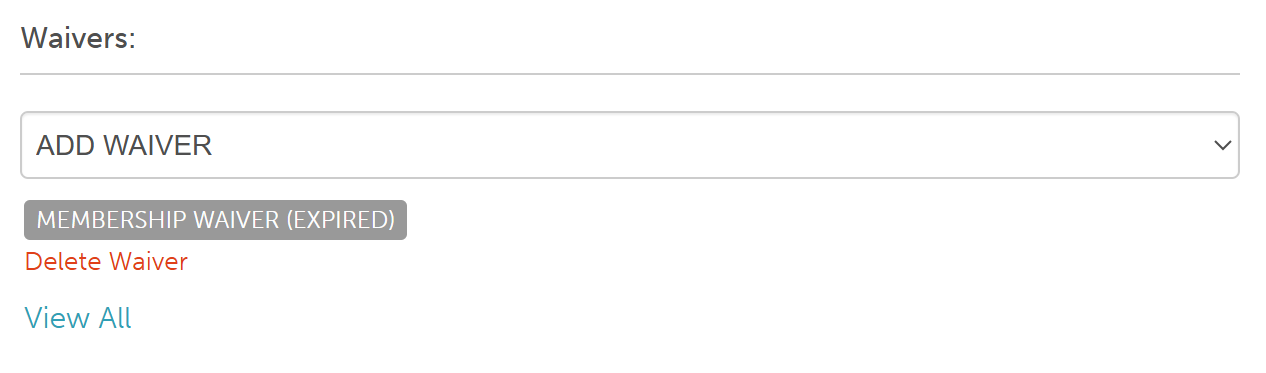 - Clicking the View All button in the Waiver section of a client’s profile opens the View All modal, where any old or replaced waivers should be visible. Note that the View All option is not available for waivers associated with pets or family members.