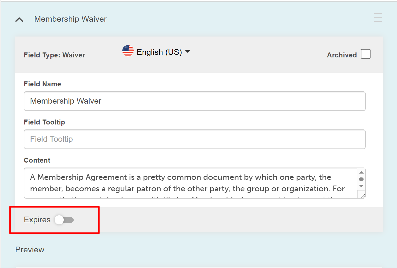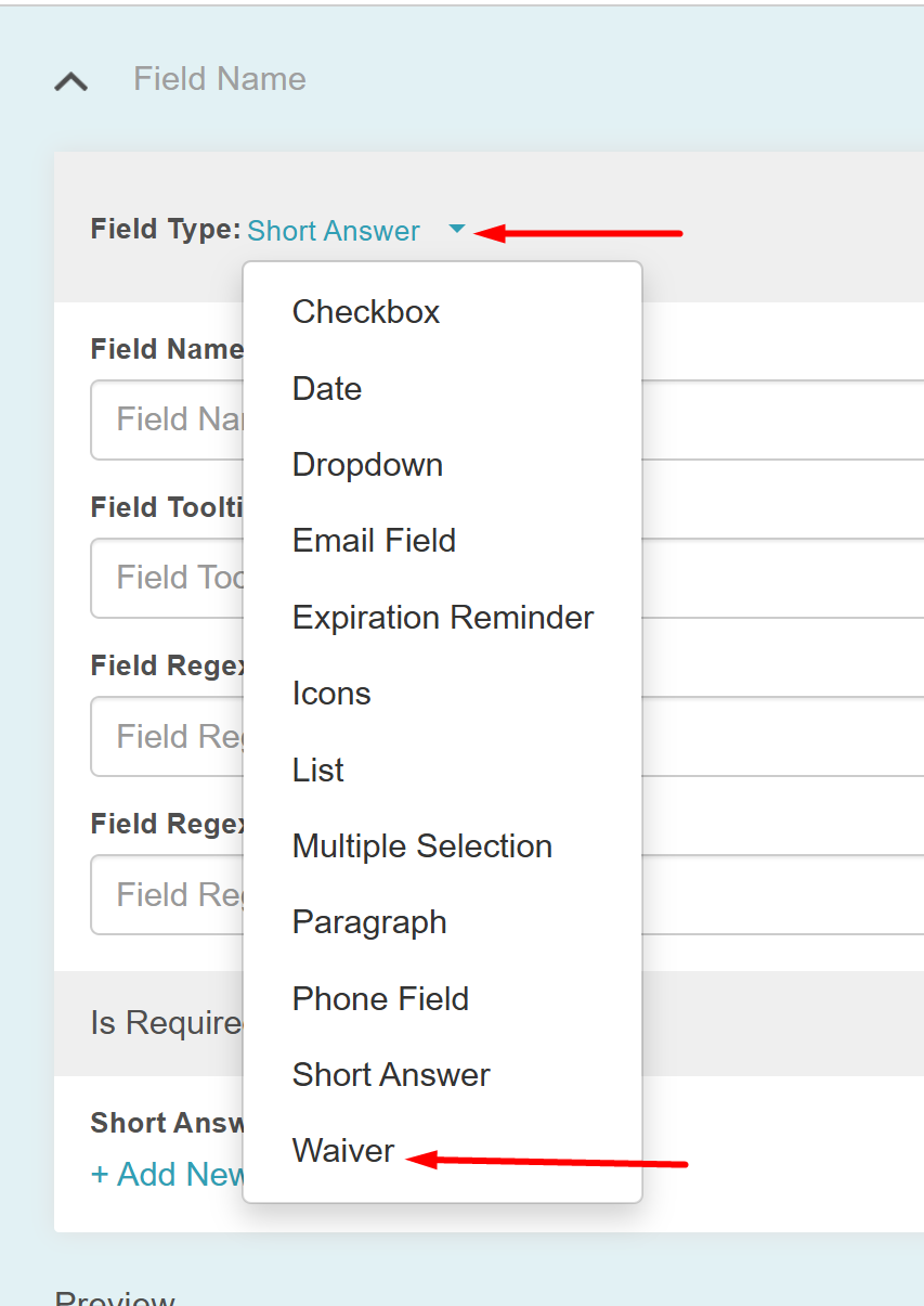 - In the Field Type dropdown, select Waiver