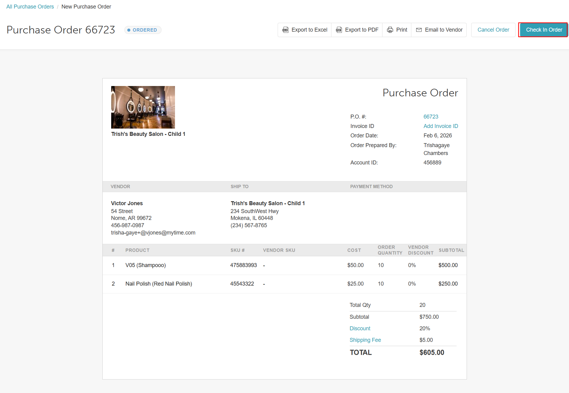 When your vendor's shipment arrives, you can check it in and update your inventory. In this article, we will go over the check-in procedure.