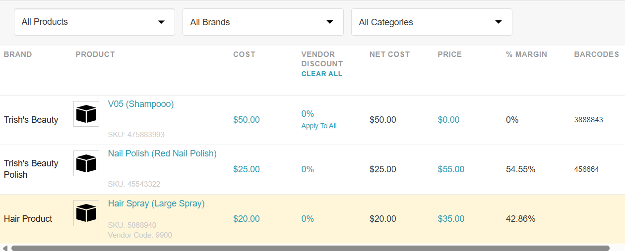 - To add a custom discount to an individual product, click the hyperlink next to the product in the Vendor Discount column