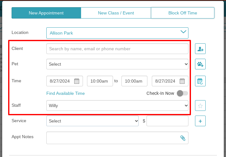 - Changing the appointment end date updates the service multiplier and recalculates pricing