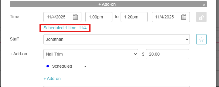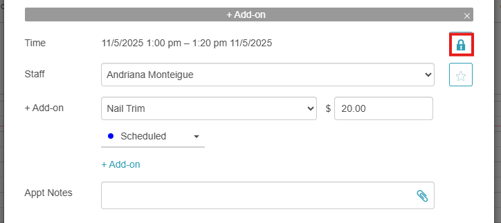 - To schedule add-ons independently, you must first unlock them from their core service in the appointment modal