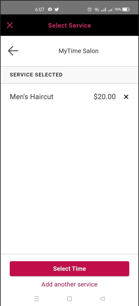 11. For additional services, clients can click on the "Add another service" link. To move forward and choose a date and time, they should then select "Time."