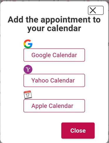 - Add the booked appointment to your personal Google, Outlook, or Apple calendar.