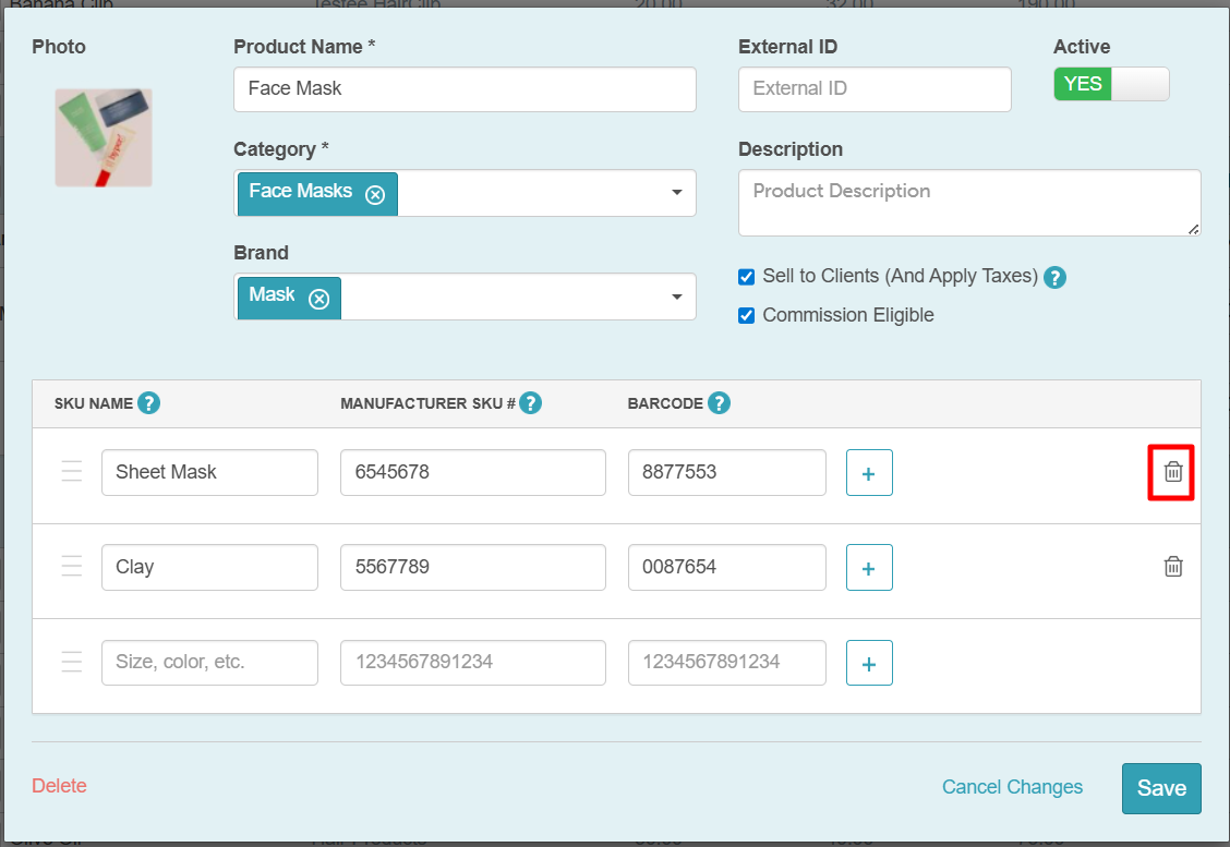 - Locate the specific SKU and click the Delete icon (trash can) next to it