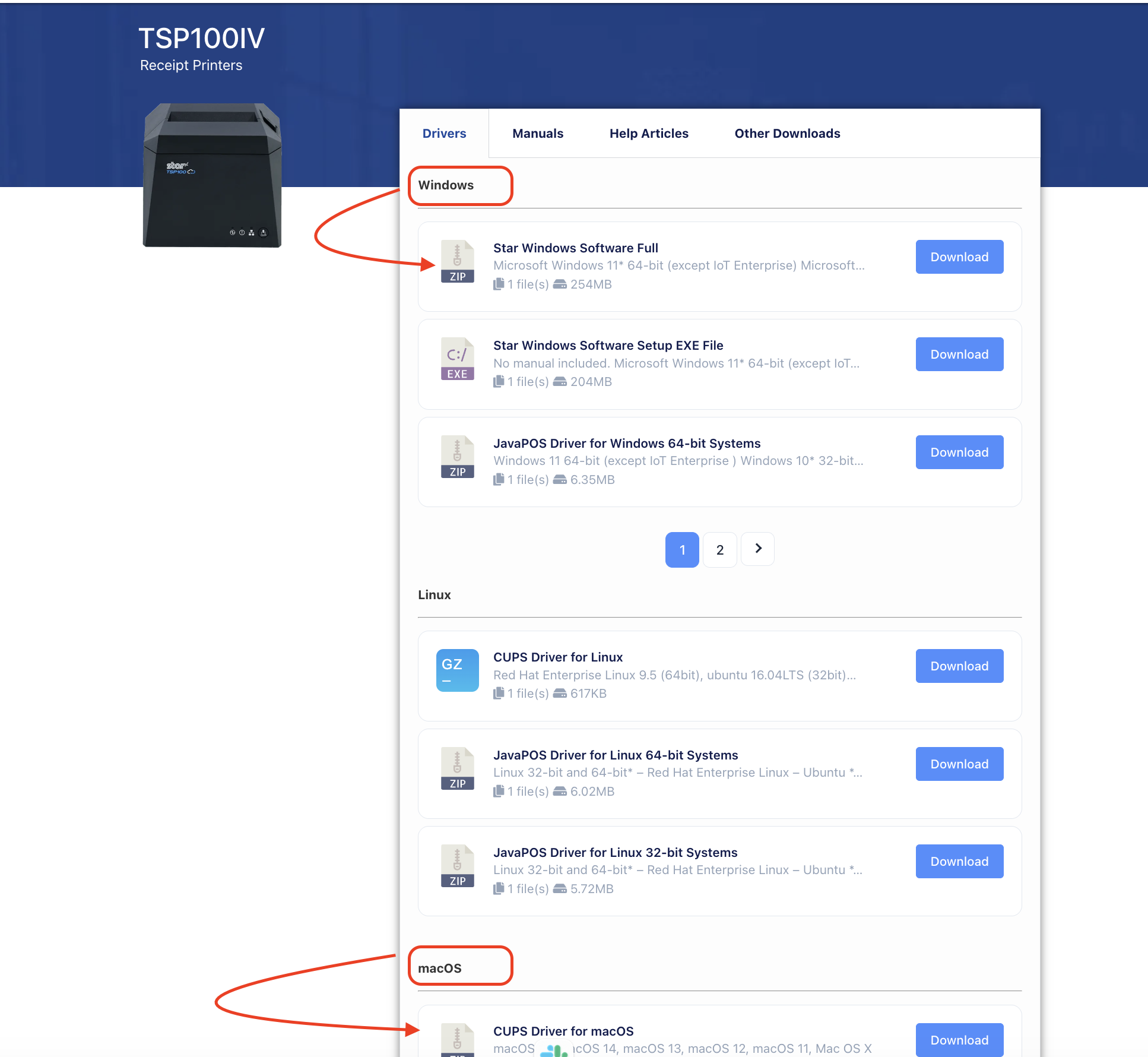 - Download the TSP100 Printer Mac/Windows Drivers by clicking here: https://starmicronics.com/support/products/tsp100iv-support-page/