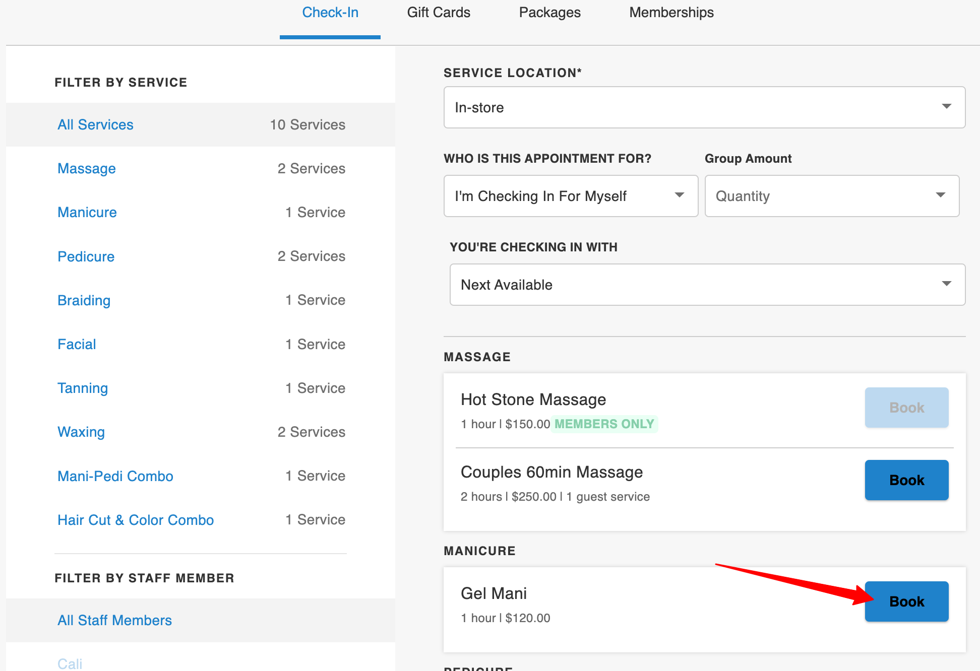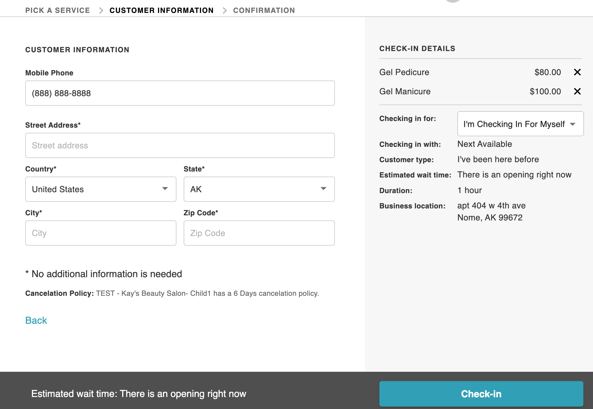 Once the Walk-in Waitlist is configured on your website, clients can add themselves to the waitlist by: