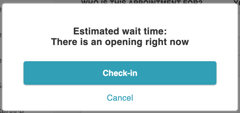 - By default, appointments that have been waiting for more than 15 minutes are ignored when calculating wait times. Example: If the next available slot is 9:00 AM and it is currently 8:45 AM, the estimated wait time displayed to clients will be 15 minutes.