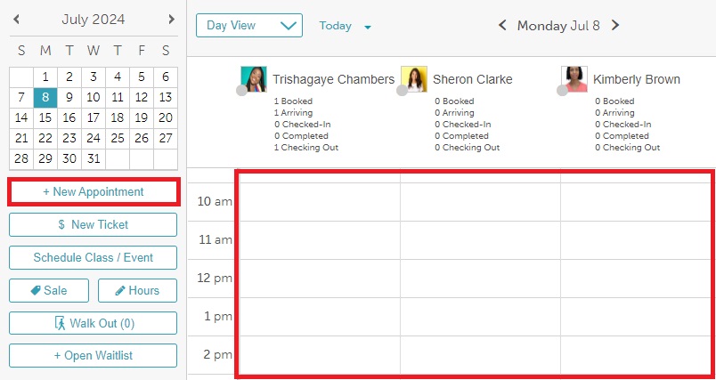 - Click on the ‘New Appointment’ button below the calendar on the left-hand side of the Schedule or on a specific time slot directly in the schedule
