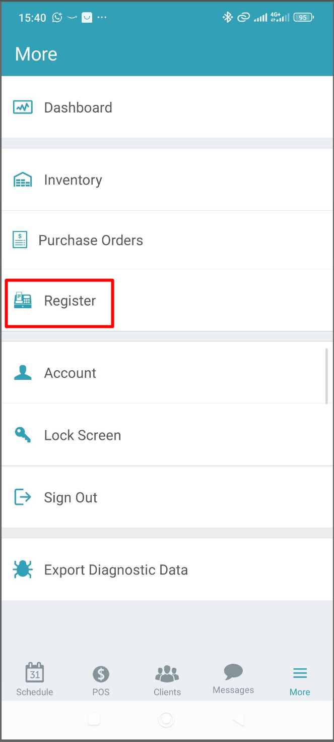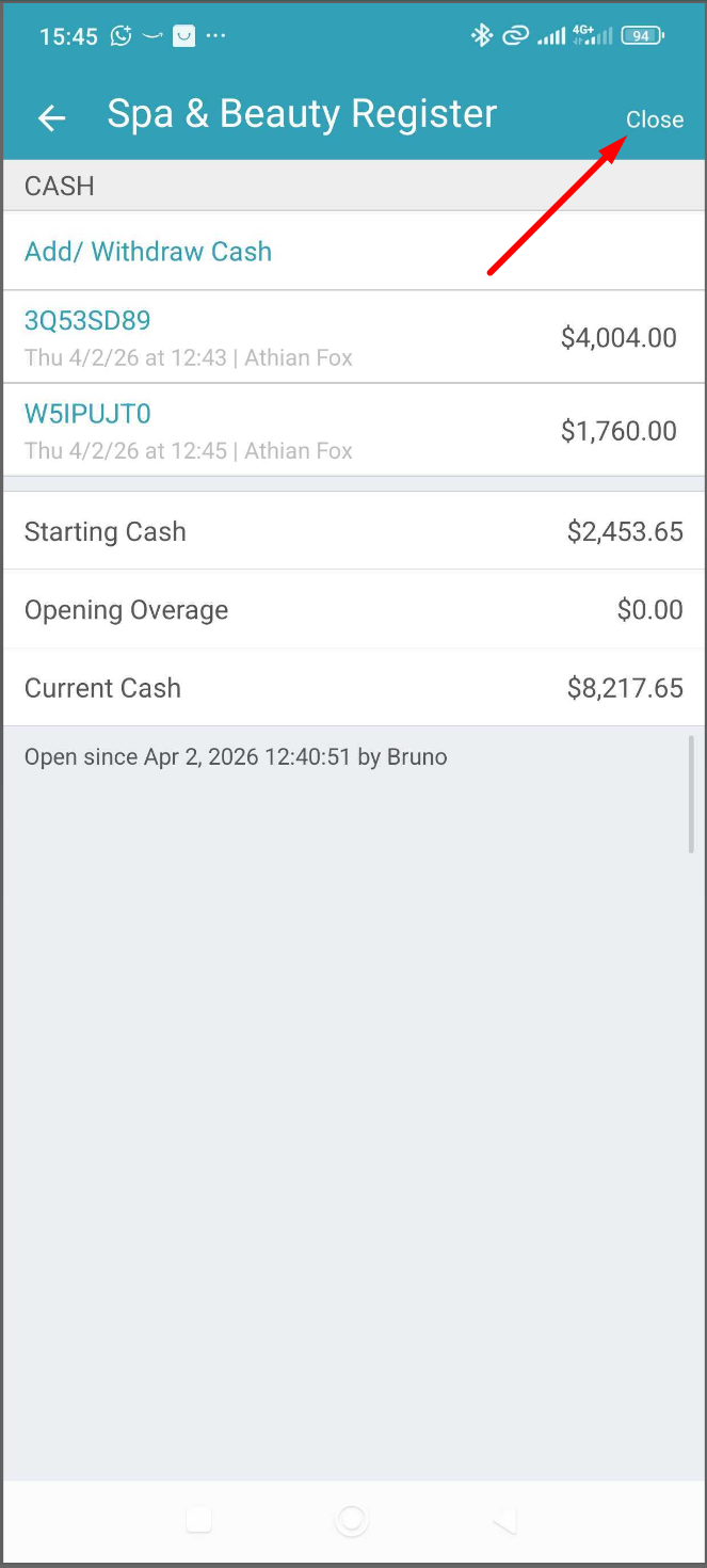 In this article, we will walk through the steps on how to close your register at the end of the day on the scheduler app.