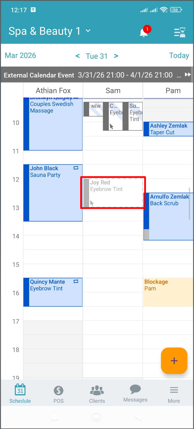 - After confirming the appointment, its status will change to "Booked," and the client will receive a confirmation if the automated message template "Appointment Booked Online by Client" is enabled