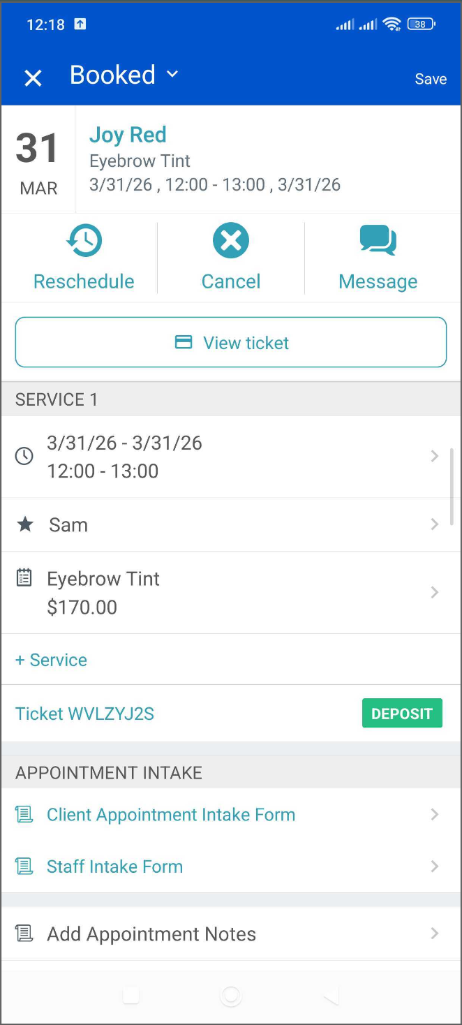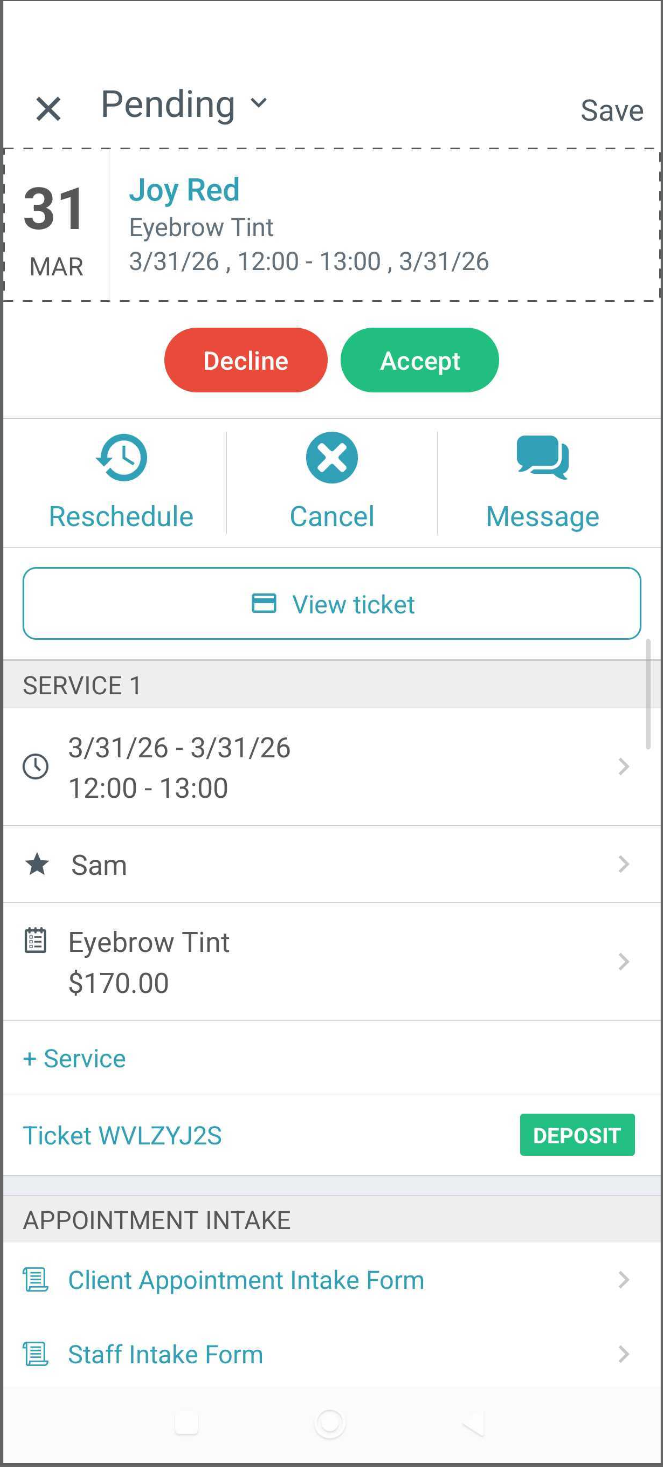 - If you tap on the accept option, the status of the appointment will change to "Booked," and the client will receive a confirmation if the automated message template "Appointment Booked Online by Client" is enabled