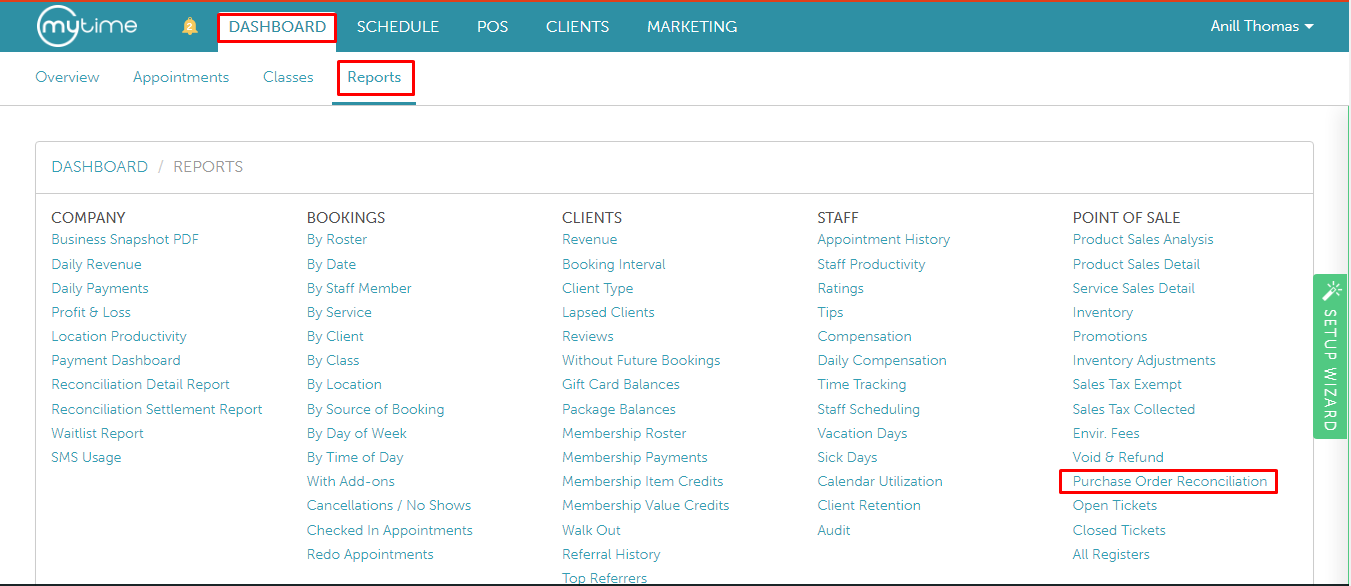 Under the Point of Sale section, select the Purchase Order Reconciliation report