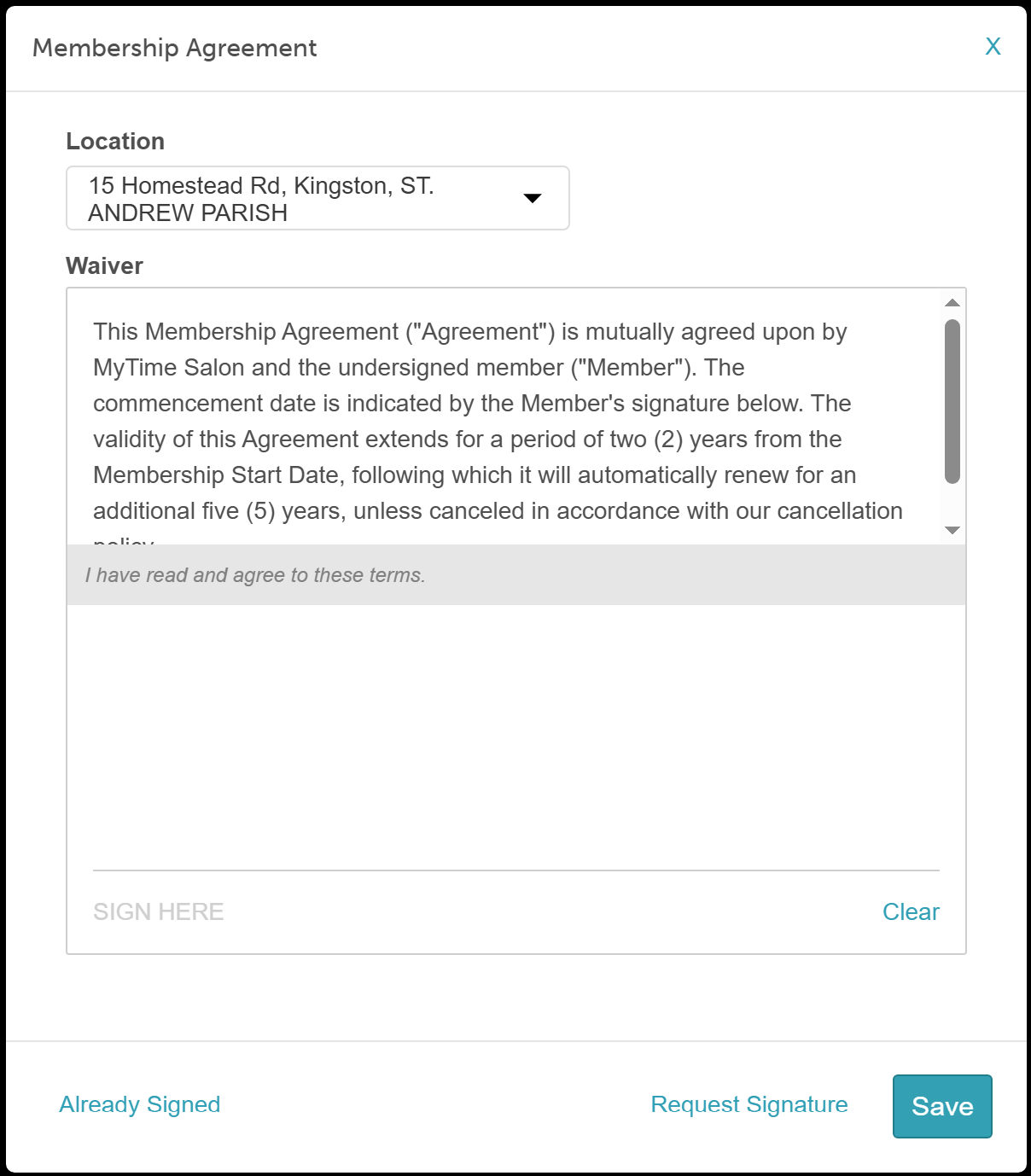 - Click Save to attach the signed waiver to the membership record