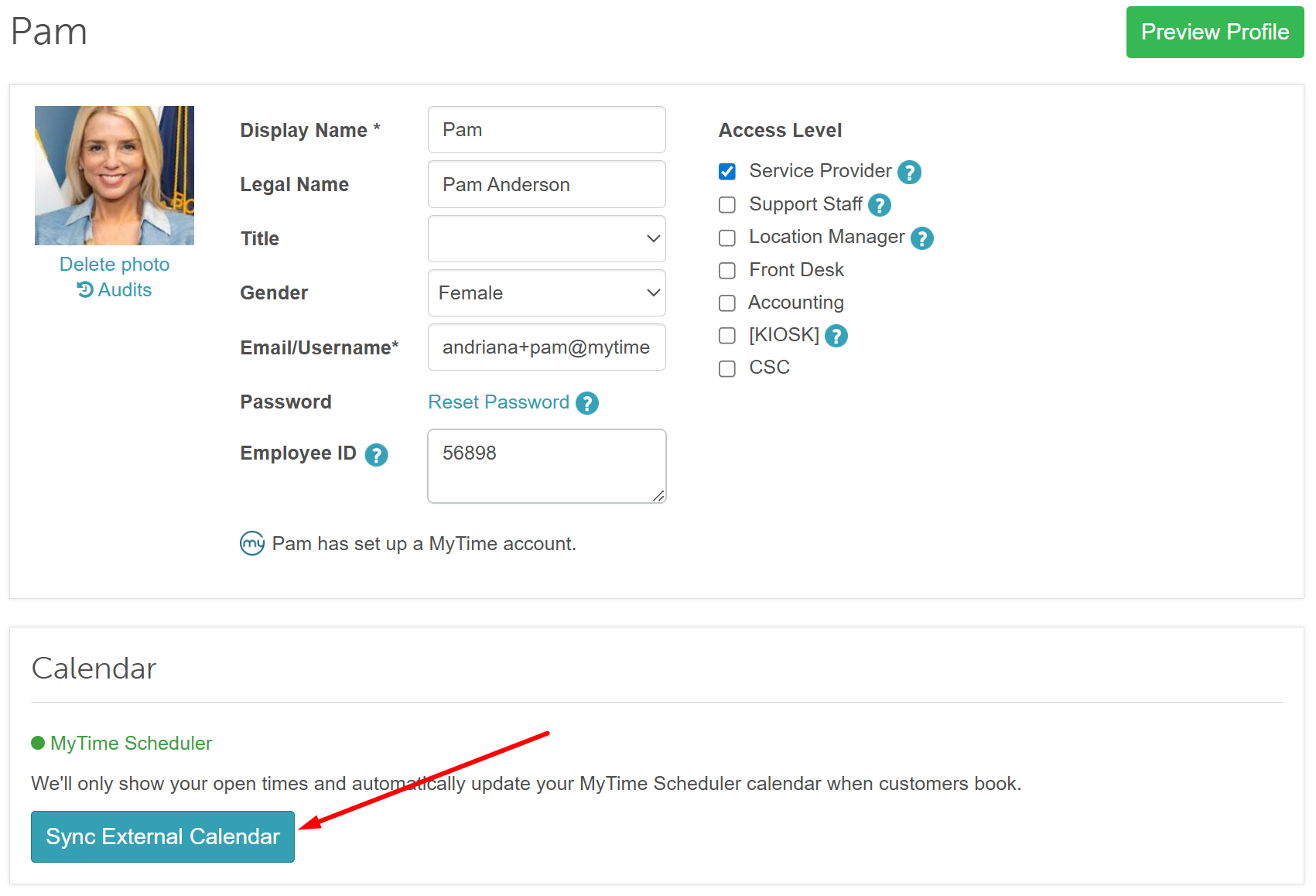 - The ability to sync Outlook Calendar with MyTime is governed by the "Accessing Staff & Availability" access control setting.