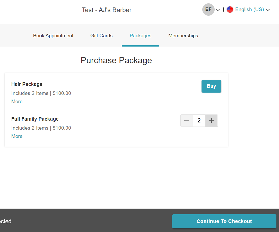 - When purchasing packages online, clients can buy multiple packages in various quantities if the packages are set up for all family members. This feature is controlled by a hidden setting that only the MyTime team can enable. To activate this setting, please contact our Support Team at support@mytime.com. Please note that if the "Can only be purchased once per client" option is enabled during package configuration, the ability to purchase multiple quantities will not be available.