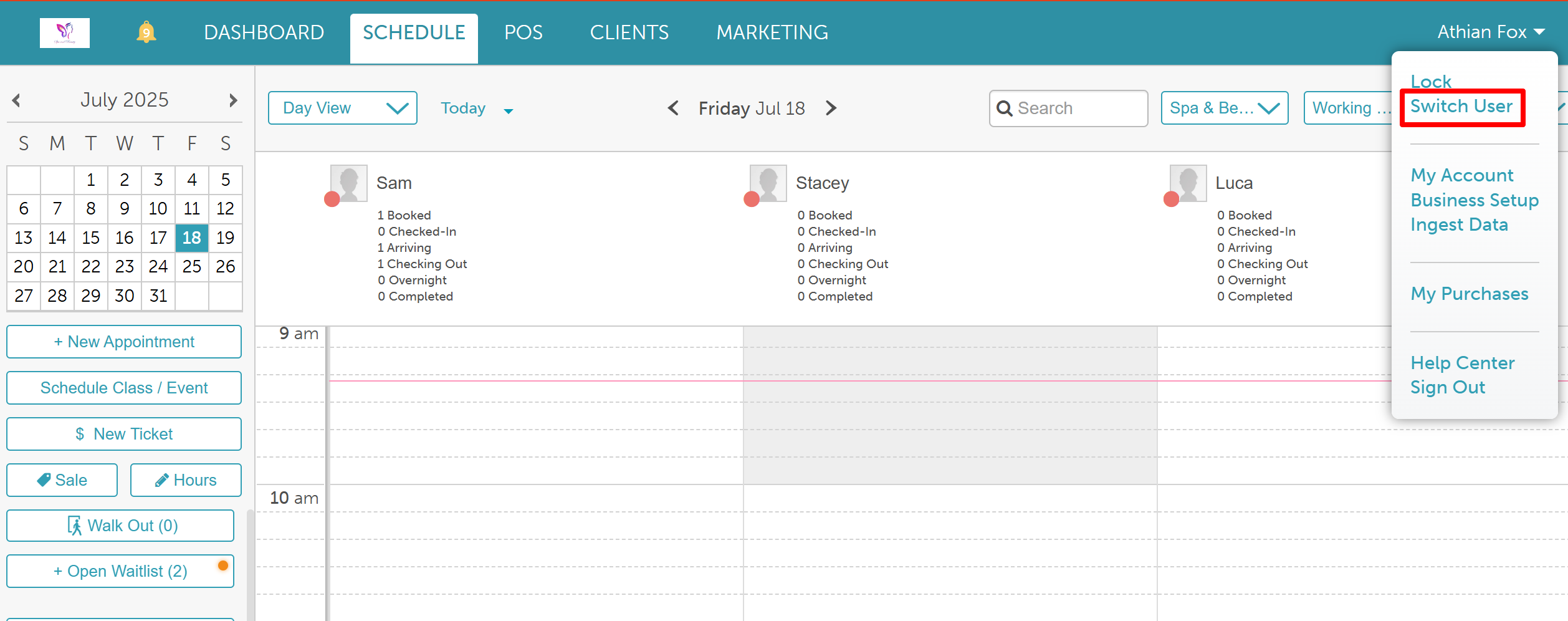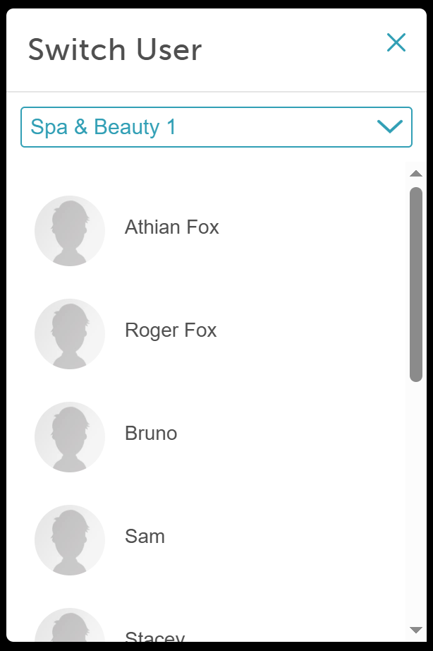 • Only staff members with a MyTime login (a profile with a username and password) will appear in the Switch User list.
