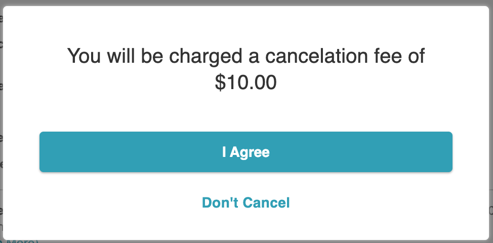 - If a cancellation fee is configured, the fee is automatically charged to the card on file.