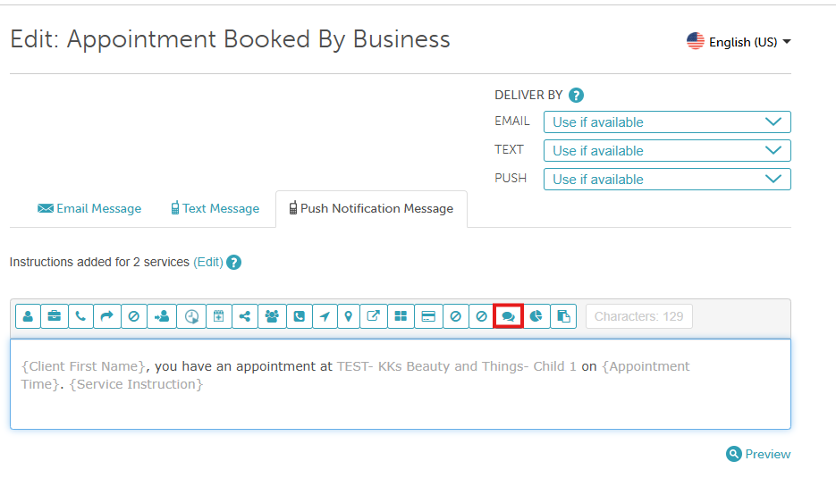 - Once service-specific instructions are added to automated message email templates, you can preview them in two ways: