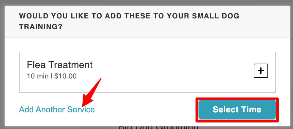 6. Choose the desired service. To add additional services, click “Add Another Service” or proceed to select a time.