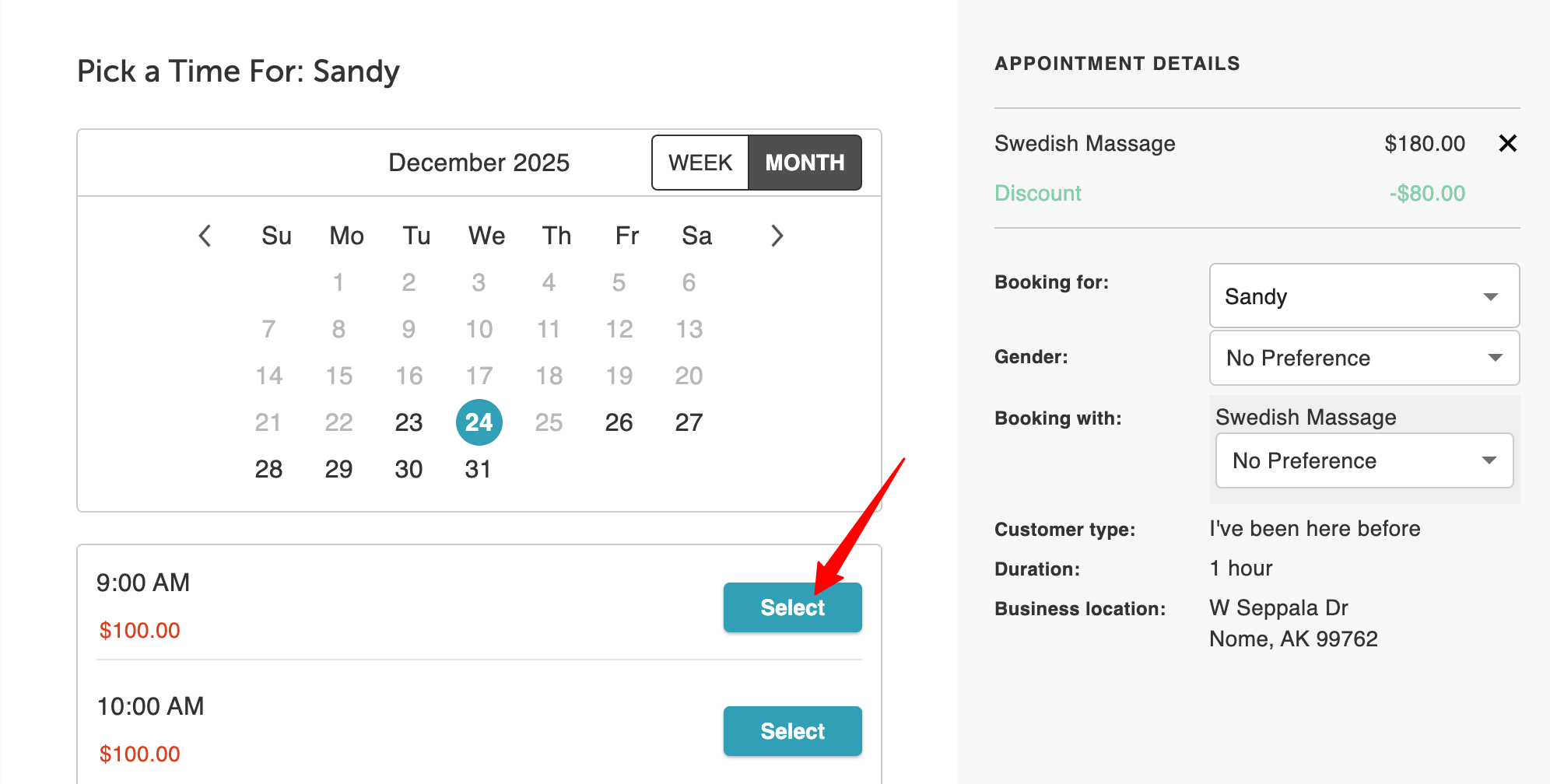 - Select a Location (if your business has multiple locations, they should choose their preferred location)